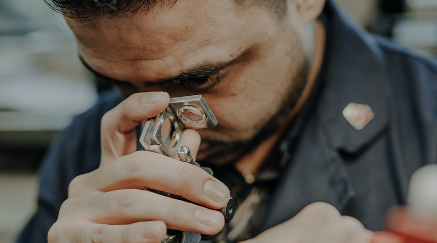 The visit starts at the diamond polishing area where you learn everything about the Amsterdam Diamond History. First, the polisher will tell you the basic knowledge about the diamond while you may observe skilled craftsmen performing the amazing diamond cutting process. Afterwards, we will guide you to a showroom. Through a magnifying glass you can view the different shapes and learn more about the 4C’s – cut, colour, clarity and carat-weight. The 4C’s are essential for the price of the diamond. After this explanation, one of the master diamond polishers will assist you to finalize the brilliance of your diamond.